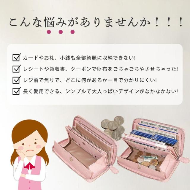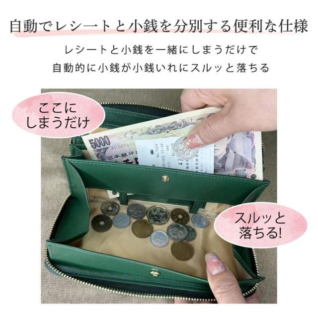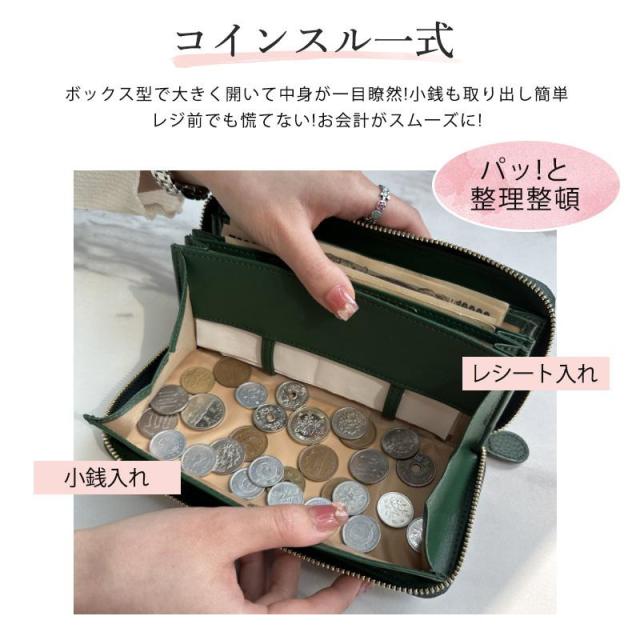 お札、小銭、カード、レシート、領収証、通帳も全部まとめて収まる大容量。