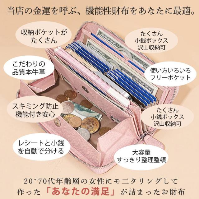 本革 長財布 レディース ギャルソン 大容量 多機能 財布 牛革 ウォレット 即納 大きく開く カード収納 小銭入れ レシート コインスルー式 自動振り分け