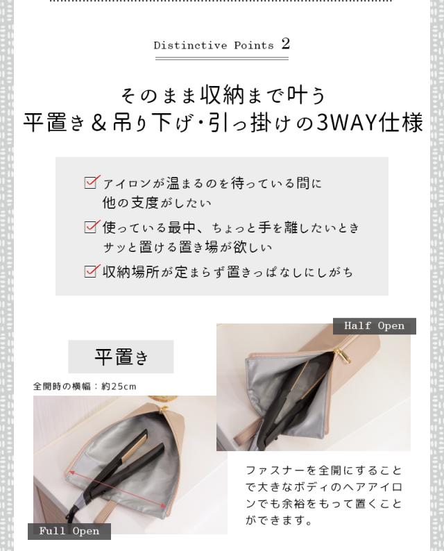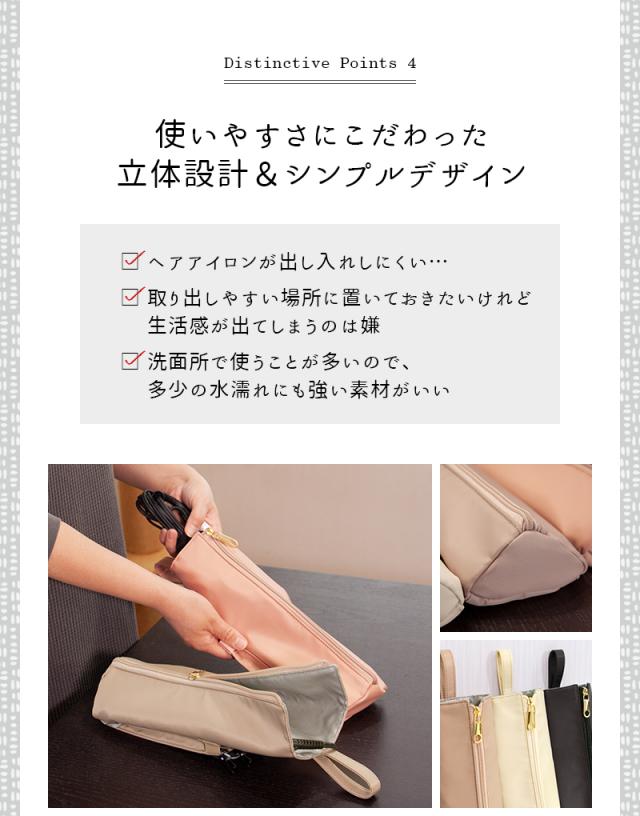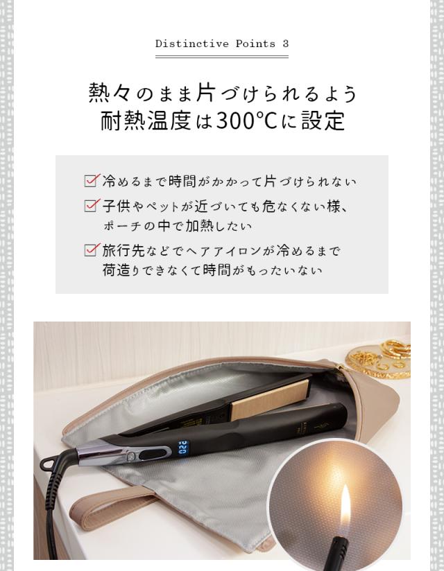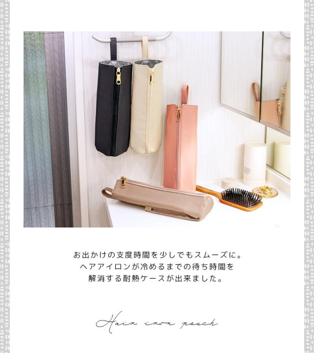 ヘアアイロンケース アイロンケース ポケット付き 小物入れ ヘアクリップ サブポケット 出し入れしやすい 旅行 宿泊 トラベルグッズ 平置き 吊り下げ 引っ掛け 収納 耐熱 耐熱ケース 耐熱ポーチ 撥水 すぐ片付けられる ポーチ ホルダー 持ち運び 持ち歩き 一時置き スーツケース 旅行ポーチ カバー 置き場所 コテ ヘアアイロンホルダー コード収納付き タオル掛け フック シンプル ファスナー チャコールグレー ベージュ グレージュ クリーム ロゼ ピンク ゴールド 便利 すっきり かわいい 3way 待ち時間 整理整頓 時間短縮 浮かせる収納 見せる収納 洗面所