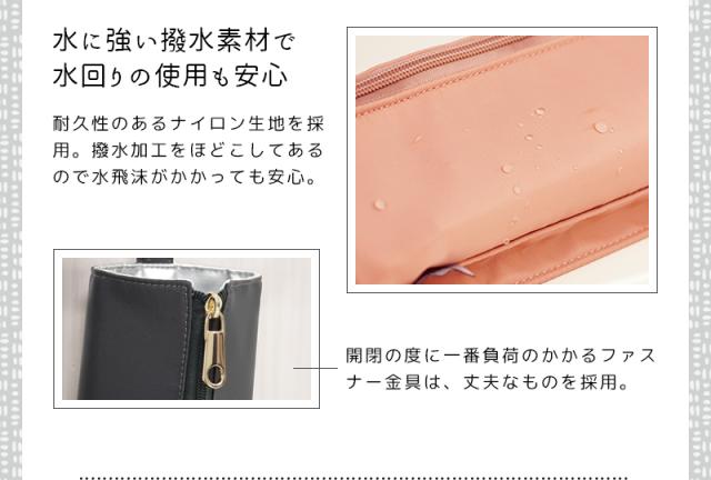 | 商品詳細 | 〇カラーバリエーション:クリーム、グレージュ、ロゼ、チャコールグレー 〇素材:表地/ナイロン 裏地/グラスファイバー 〇本体サイズ:縦31×横10cm 〇サブポケットサイズ:縦18×横10.5cm 〇紐長さ:10.5cm 〇重さ:約125g |