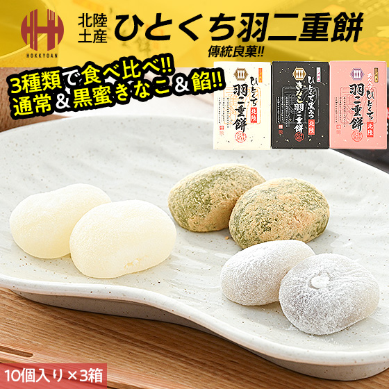 羽二重餅 はぶたえ 餅 もち 10個入り×3種セット ひとくち 黒蜜きなこ あん入り 北陸 お土産 スイーツ お菓子 お歳暮 御歳暮 ギフト