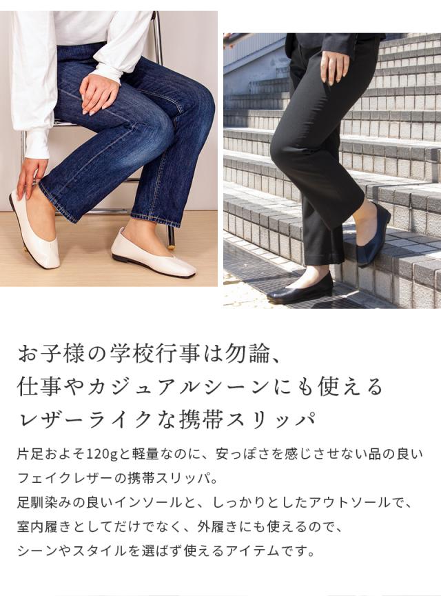 携帯スリッパ レディース メンズ 折らない かかと付き スリッパ かかと踏める パンプス風 バブーシュ【meru】ヒール 極上柔らか レザーライク おしゃれ かわいい フォーマル 学校行事 入学 卒業式 参観日 上履き 旅行
