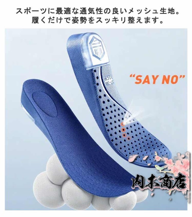 | 立ち仕事や街歩き、ウォーキングにピッタリなシークレットインソールです。 深めのカップがかかとをしっかりカバーするのでフィット感抜群。 スポーツに最適な通気性の良いメッシュ生地。履くだけで姿勢をスッキリ整えます。 1.5cm 2.5cm 3.5cmのシークレットソール。足を長く綺麗に見せたい、自然に無理なく身長を高く見せたい方にお勧め! 通勤時や立ち仕事・ランニング・スポーツ ・登山など様々なシ ーンでお使いいただけます。 | |