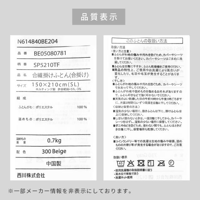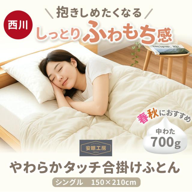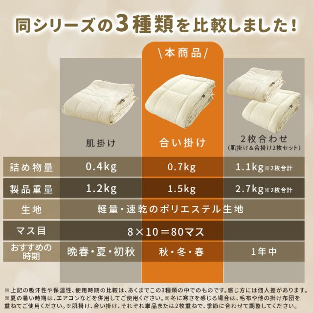 [keyword|西川 もちふわマイクロ天竺 合掛け布団 掛け布団 シングルロング 150×210cm ふとん 春 秋 合繊 寝具 洗える ベージュ アイボリー グレー 無地 ふわふわ もちもち キルト 当社限定]