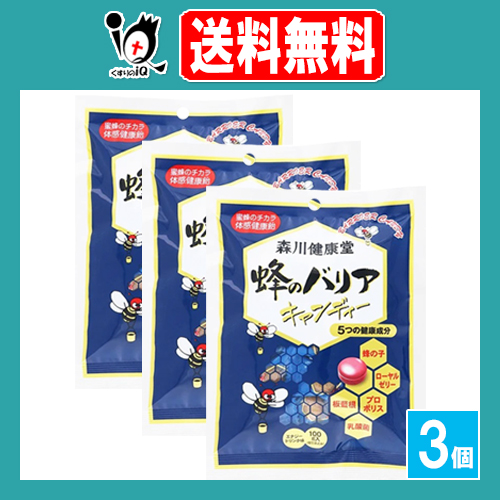 蜂のバリアキャンディー 100g×3個セット 【森川健康堂】健康サポートキャンディー 蜂の子 ローヤルゼリー プロポリス 板藍根 乳酸菌 ビタミンC ビタミンD エナジードリンク風味