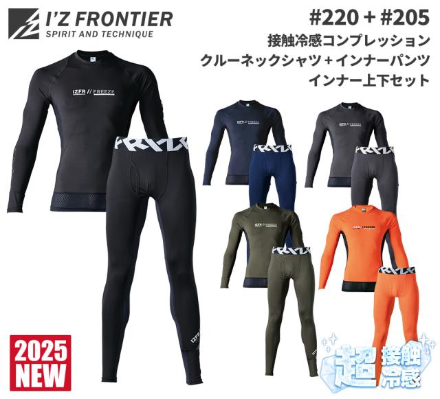 インナー 長袖 アイズフロンティア I'Z FRONTIER アイズフロンティア インナー上下セット(接触冷感コンプレッション クルーネックシャツ #220 +超遮熱・接触冷感コンプレッションタイツ #205) 夏用 涼しい クール