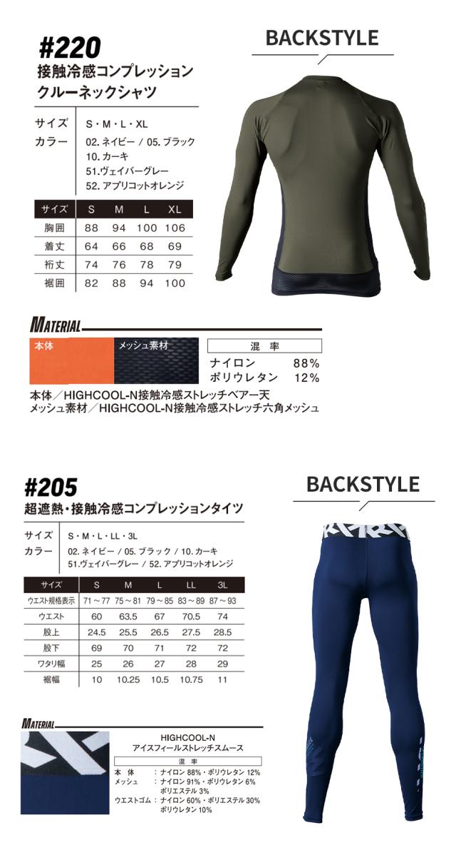 アイズフロンティア インナー上下セット(接触冷感コンプレッション クルーネックシャツ #220 +超遮熱・接触冷感コンプレッションタイツ #205)