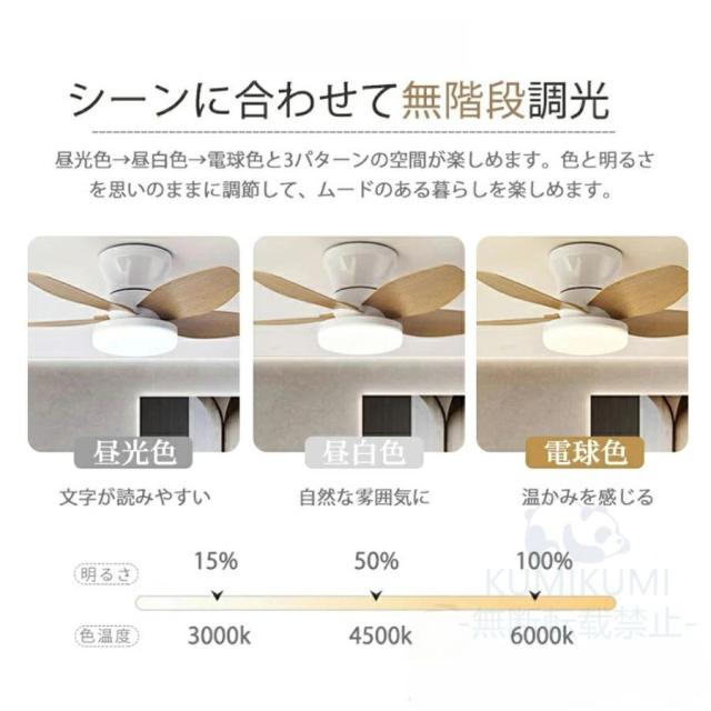 シーリングファン シーリングファンライト 8~12畳 LED DCモーター 調光調色 おしゃれ シーリングライト ファン付き リモコン付き 風量調節 軽量 木目羽 人気