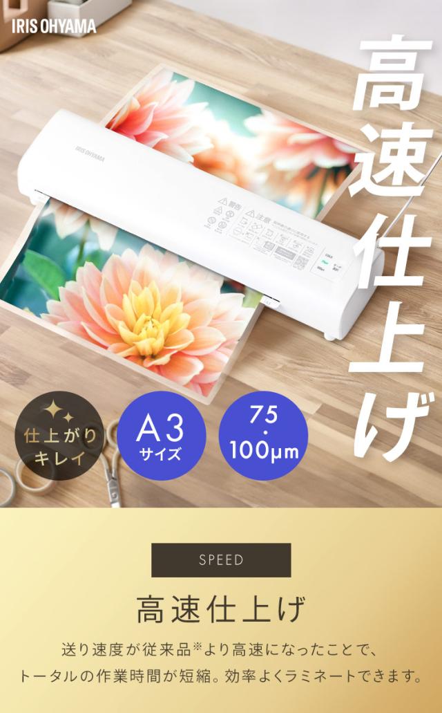ラミネーター 本体 a3 アイリスオーヤマ ラミネートフィルム 75ミクロン 100ミクロン 対応 ラミネート 高速化 時短 保護 丈夫 掲示物 写真 絵 保育園 幼稚園 学校 店舗 オフィス コンパクト A3対応 ラミネート機 家庭用 LM32D-W ホワイト *