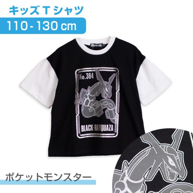 ポケモン キッズ 男の子 Tシャツ 半袖 子供服 ポケットモンスター レックウザ 黒いレックウザ ボーイズ ブラック 110 120 130 子供 ジュニア