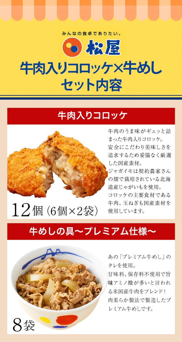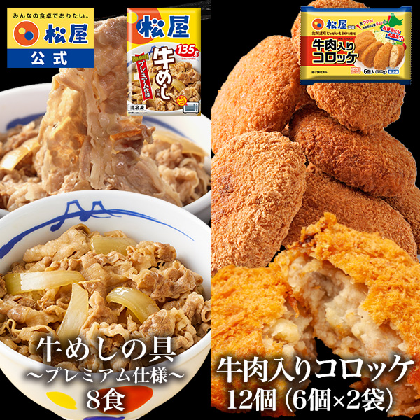【衝撃の31%OFF!】 松屋 牛めしの具8食と牛肉入りコロッケ12個 (6個×2袋) コロッケ 牛肉 肉 食品 グルメ 冷凍 冷凍食品 送料無料 おかず まつや 受験生応援 惣菜 業務用 お弁当 レンチン お試し 非常食