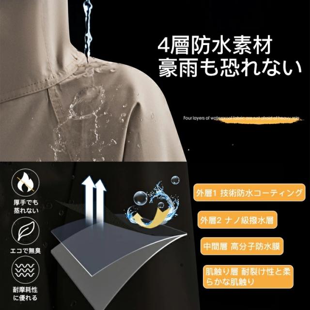 【強力撥水&防水加工】撥水加工と防水コーテイングにより、大雨でも心配することなく、旅行やアウトドア、レジャーに安心使用できます。傷がつきにくく、目に見える厚みがあり、ゴム臭がありません。防水性が高く丈夫で破れにく耐久性にも優れたレインコートです