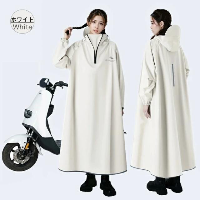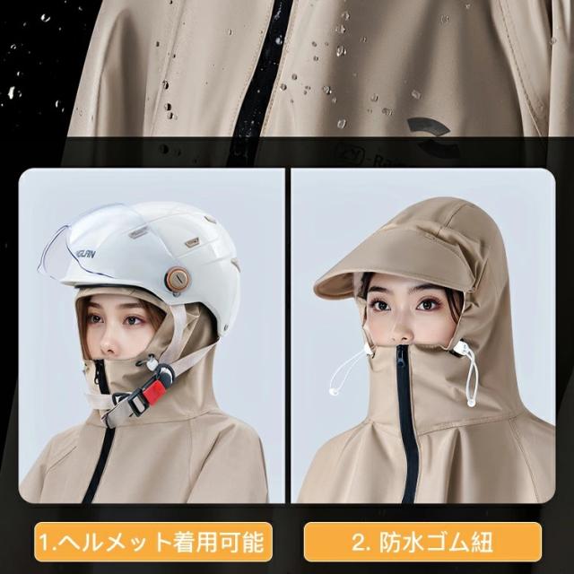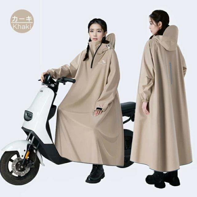 【濡れにくい着丈】全身を包むよう超ロング丈で、足元までしっかり覆えて雨を防ぎます