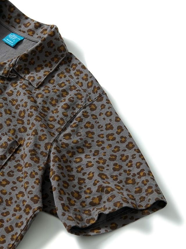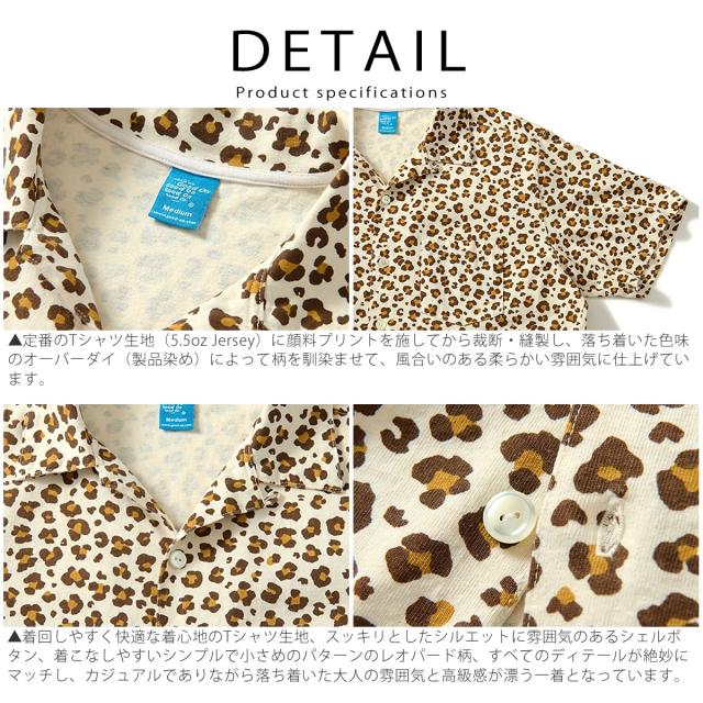着回しやすく快適な着心地のTシャツ生地、スッキリとしたシルエットに雰囲気のあるシェルボタン、着こなしやすいシンプルで小さめのパターンのレオパード柄、すべてのディテールが絶妙にマッチし、カジュアルでありながら落ち着いた大人の雰囲気と高級感が漂う一着となっています。