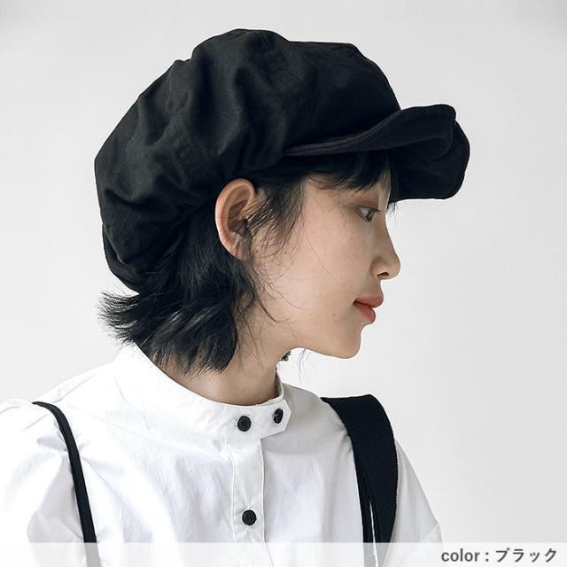 秋新作 帽子 レディース キャスケット キャップ 春 夏 秋 黒 おしゃれ くしゅくしゅ ぽわん 調節可 コットン100% 綿100%[郵1]^msz170^ ★