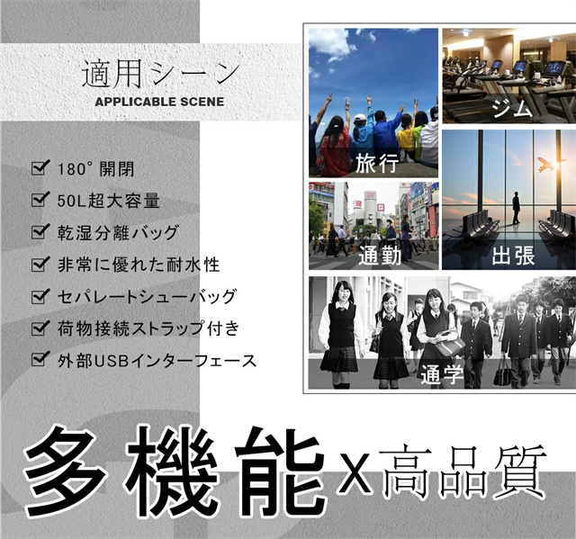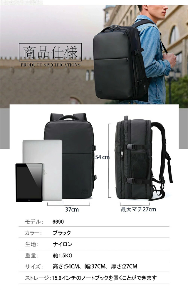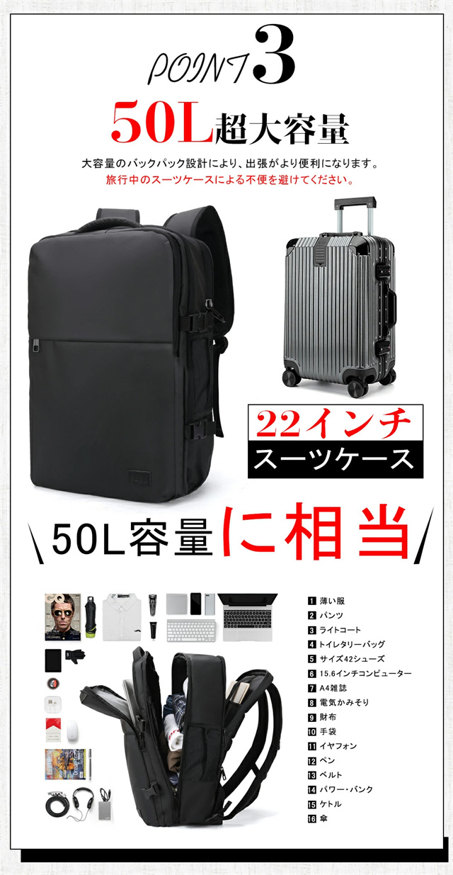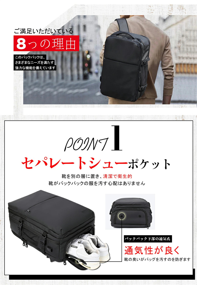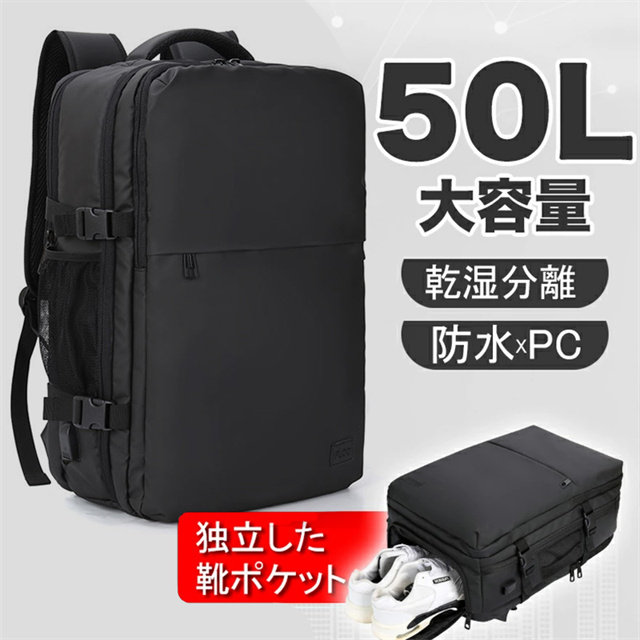 送料無料 冬新作 リュック 50L 大容量 ビジネスリュック メンズ 防水 ビジネス a4 pc usbポート 多機能 靴 収納 出張 旅行 ジム 防災 ナイロン 2way カジュアル 通学 通勤 旅行用 撥水 15.6インチ ポケット 多い リュックサック