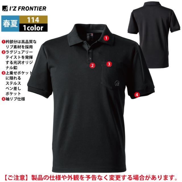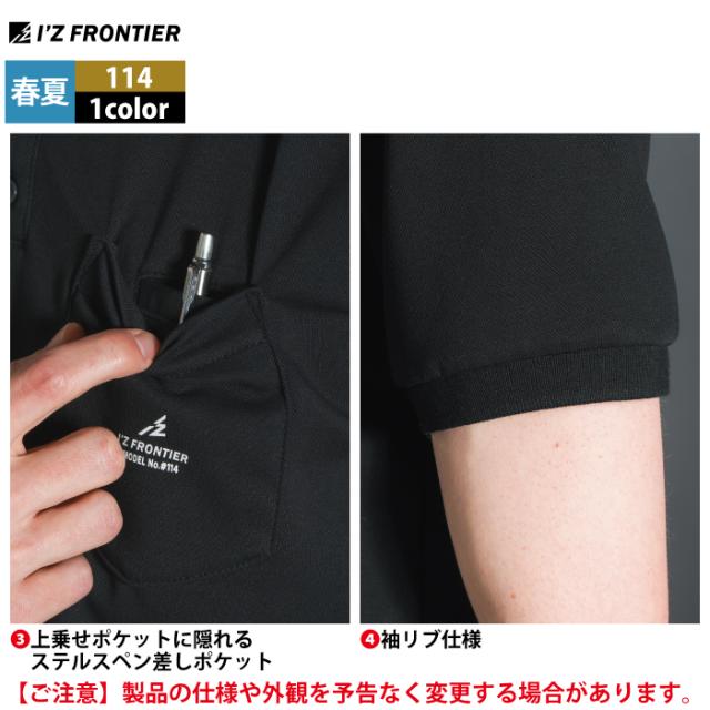 アイズフロンティア 作業服 2025春夏新作 114 半袖ポロシャツ S-4L 作業着 おしゃれ