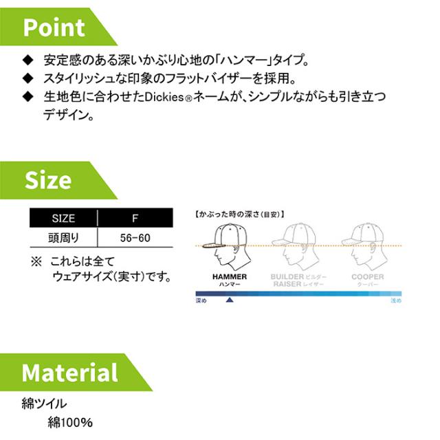ディッキーズ Dickies 作業服 作業着 オールシーズン D-8212 ワークキャップ(ハンマー) F