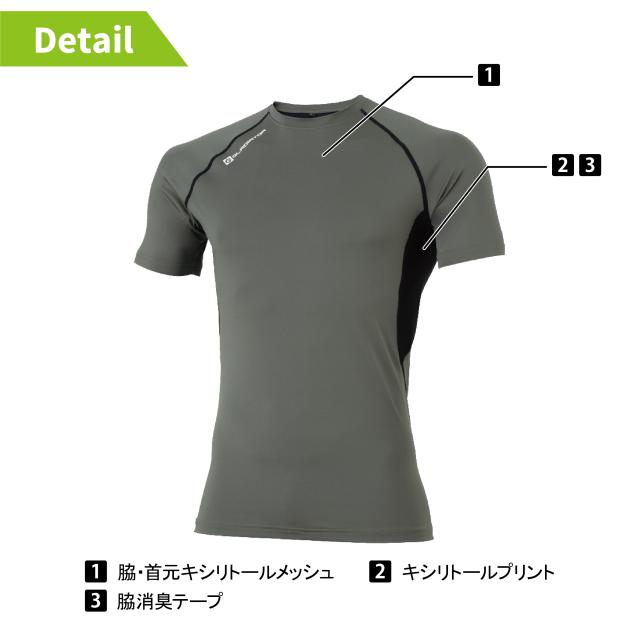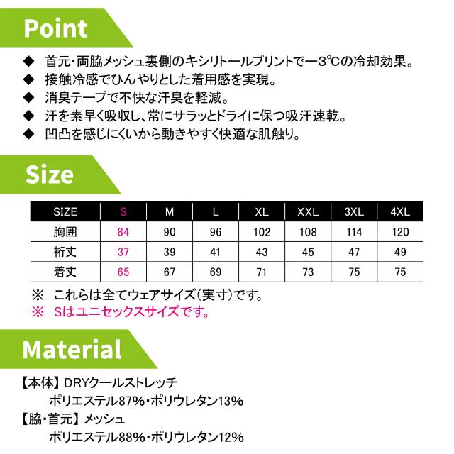 ◇首元両脇メッシュ裏面キシリトールプリントで−3℃の冷却効果