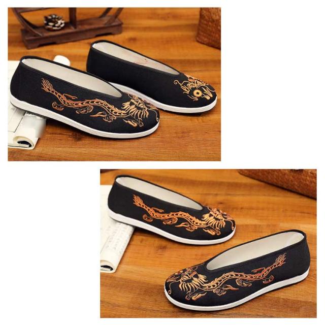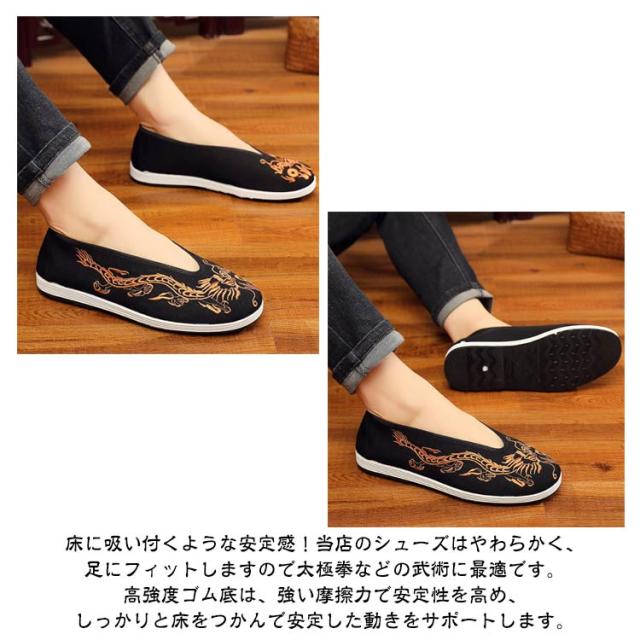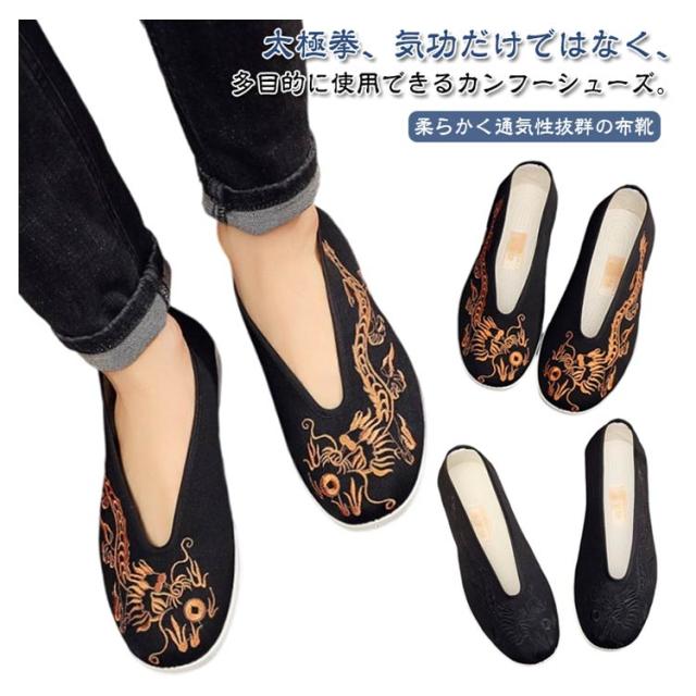 シューズ 布靴 競技 レディース 功夫シューズ メンズ 功夫靴 太極拳シューズ 厚底 太極拳 靴 カンフーシューズ 刺繍 カンフーシューズ ドラゴン柄 長拳 南拳 伝統拳 武術 練習 演舞 素足 スポーツ 靴 くつ 軽量 滑り止め 柔らかい布製