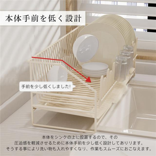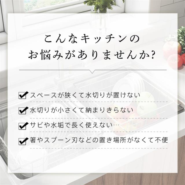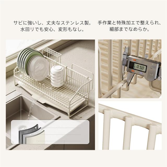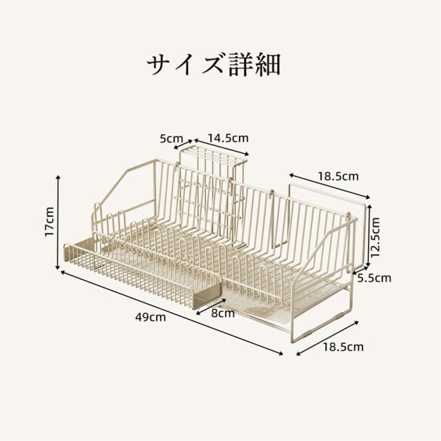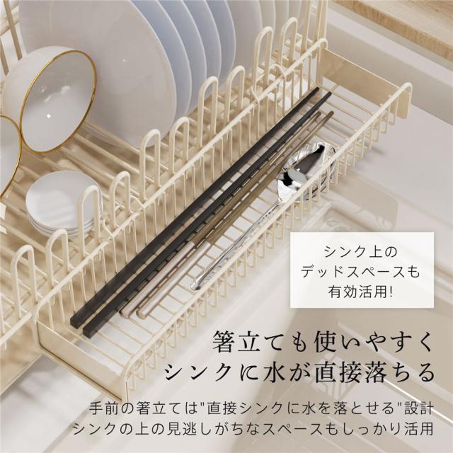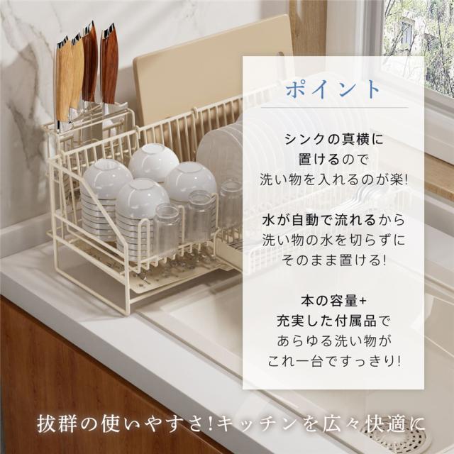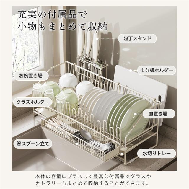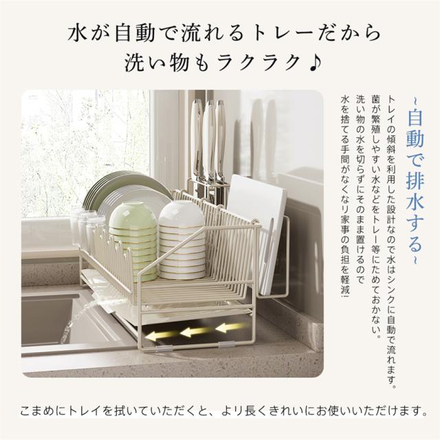 メーカー希望小売価格: 9,980円水切り 水切りラック シンク 水切りかご スリム 大容量 包丁立て 箸置き まな板立て 水を自動で流すトレー付き 省スペース 食器
