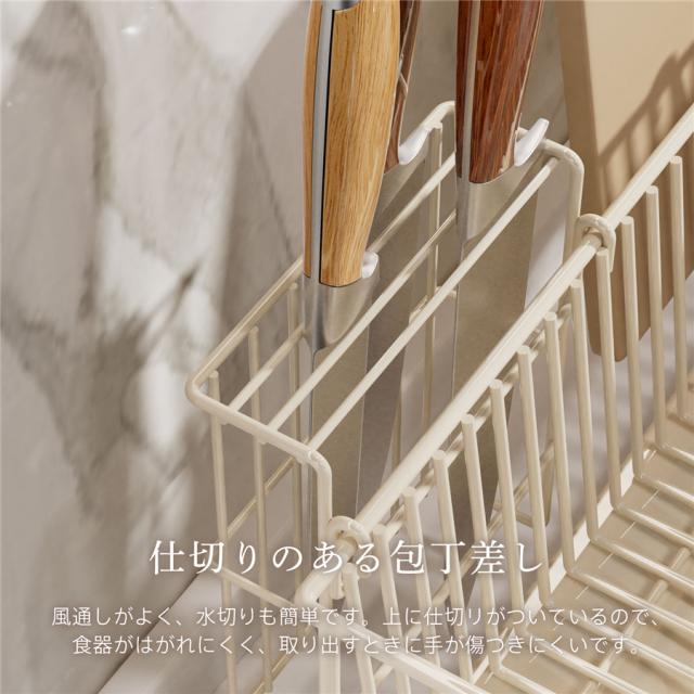 検索キーワード:水切り 水切りラック 水切りかご スリム おしゃれ 大容量 包丁立て 箸置き まな板立て 水を自動で流すトレー付き 細長い 狭い 省スペース シンク横 キッチンラック 一人暮らし 組み立て簡単 水切りカゴ