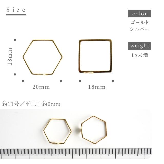 【内容詳細】リング 指輪 ヘキサゴン スクエア 台座 11号 ゴールド シルバー 20個 平皿6mm