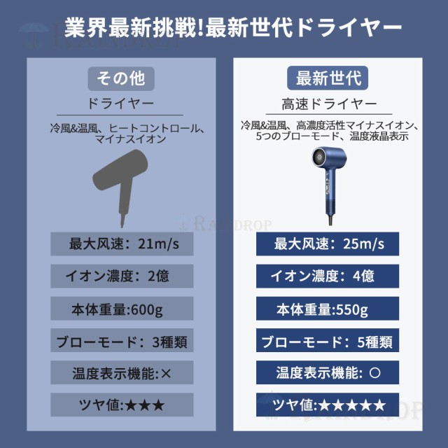 ドライヤー 速乾 ヘアドライヤー 大風量 4億マイナスイオン 冷熱風 25M/S 超軽量 3段階風速 温度調整 低騒音 高速ドライヤー ギフト 高級 おしゃれ
