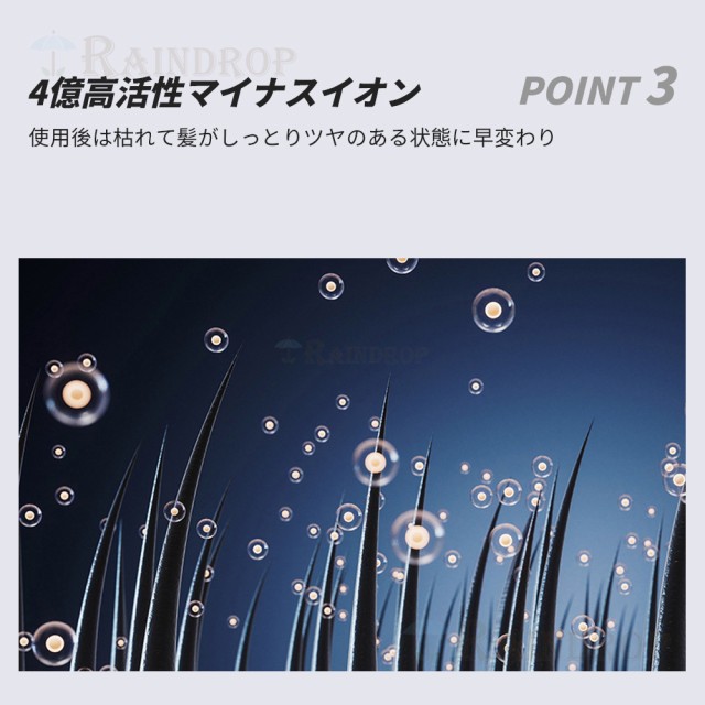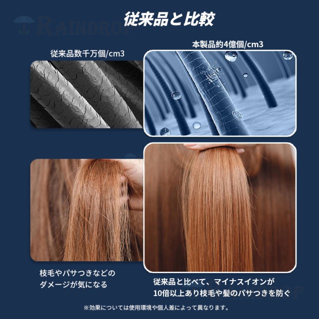 [マイナスイオン搭載]静電気を抑制し、摩擦などで傷つきやすい髪を守ります。