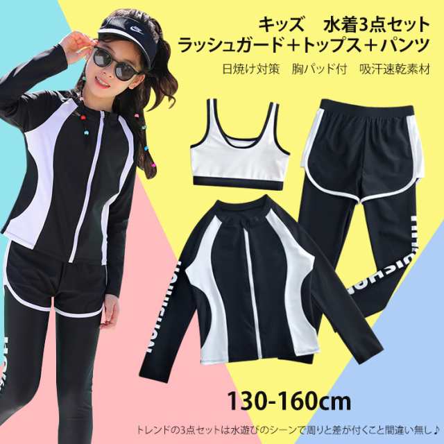 子供 水着 女の子 スクール水着 トランクス キッズ 長袖 ラッシュガード+トップス+パンツ 上下3点セット 150-160胸パッド付 UVカット 日焼け対策 海水浴 スポーツ 練習用 プール 男の子 子供服 UV対策 子供水着 こども 子供用 ジュニア 130 140 日常 おしゃれ 可愛い 女児