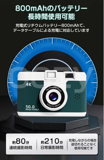 約80分の連続撮影が可能で、充電しながら使用できるため、途切れることなく楽しめます。