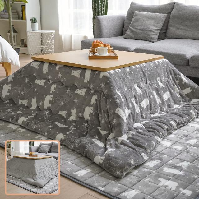 Vamcheer こたつ布団 正方形 こたつふとん 単品 190x190cm こたつ用布団 あったか こたつ掛け布団 厚手 フランネル リバーシブル 両面使える ふわふわ ぽかぽか ぬくぬく 冬用 洗える 静電気防止 毛抜けない ホッキョクグマ柄xグレー