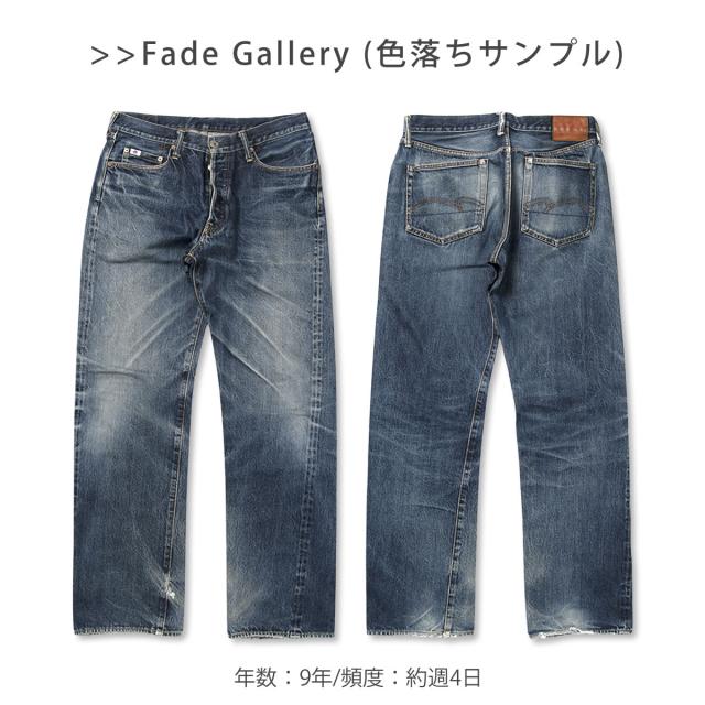 深く濃いインディゴで染め上げられており、色落ちには時間がかかるものの、ヒゲやアタリがしっかりと現れる1本。