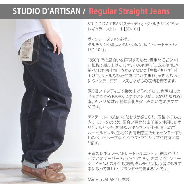 【 日本製 】ジーンズ ステュディオ・ダルチザン 100番台15oz右綾セルヴィッジデニム レギュラーストレートジーンズ STUDIO DARTISAN デニムパンツ ( SD-101 ) ステュディオダルチザン メンズ ボタンフライ ブルーセルビッジ ヴィンテージジーンズ アーベン
