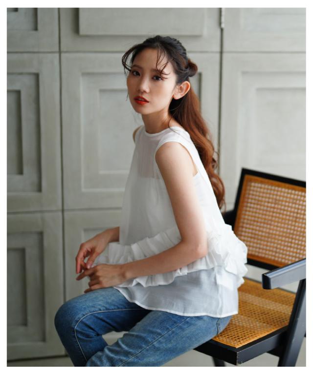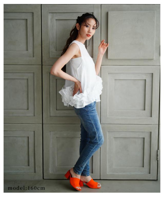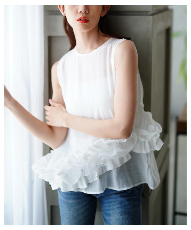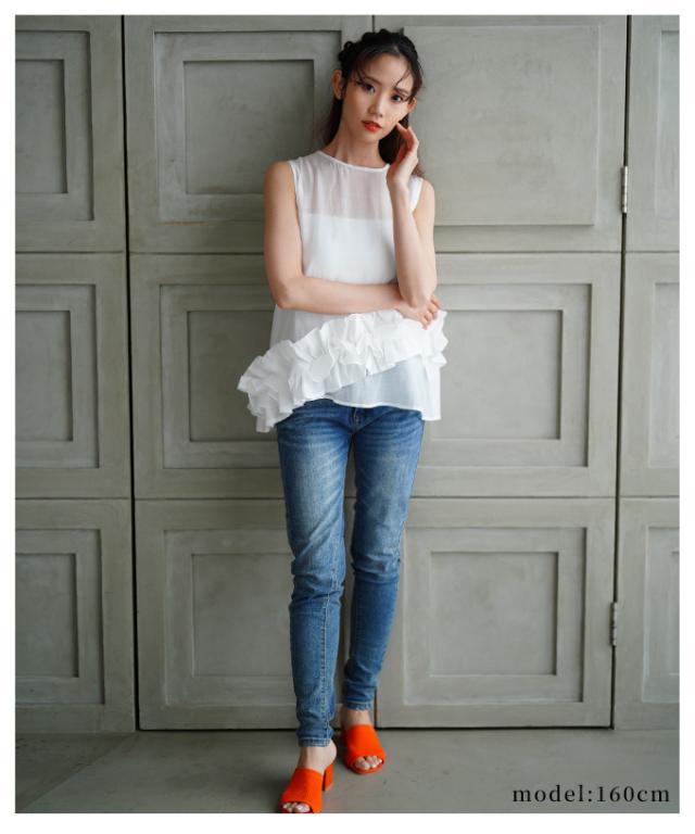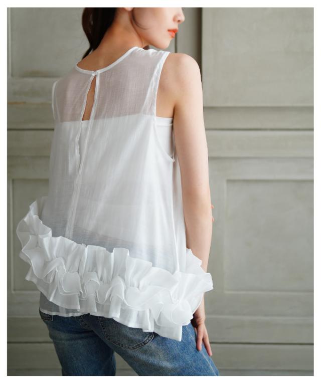 商品名: 流れるアシンメトリーフリルのシアーブラウス