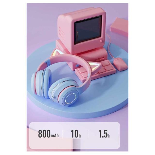 ワイヤレスで高品質のステレオBluetoothヘッドセットです。ファッショナブルな外観、可愛い猫耳デザインでいつでも自宅、旅行、その他どこにでも持っていけて手軽に音楽を楽しめます。マイク内蔵なのでPS5、スイッチ、XBOX PCゲーム 実況に最適です。