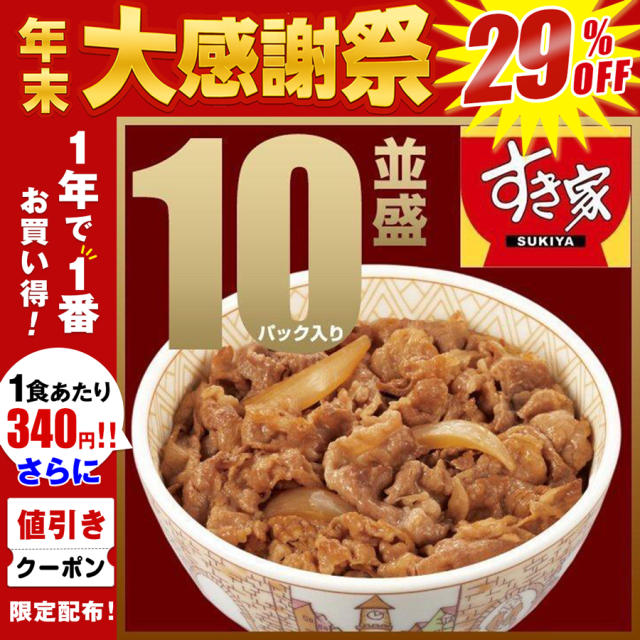 1年で今が1番お得!すき家 牛丼の具 135g 10パックセット【送料無料】【冷凍(クール)】C