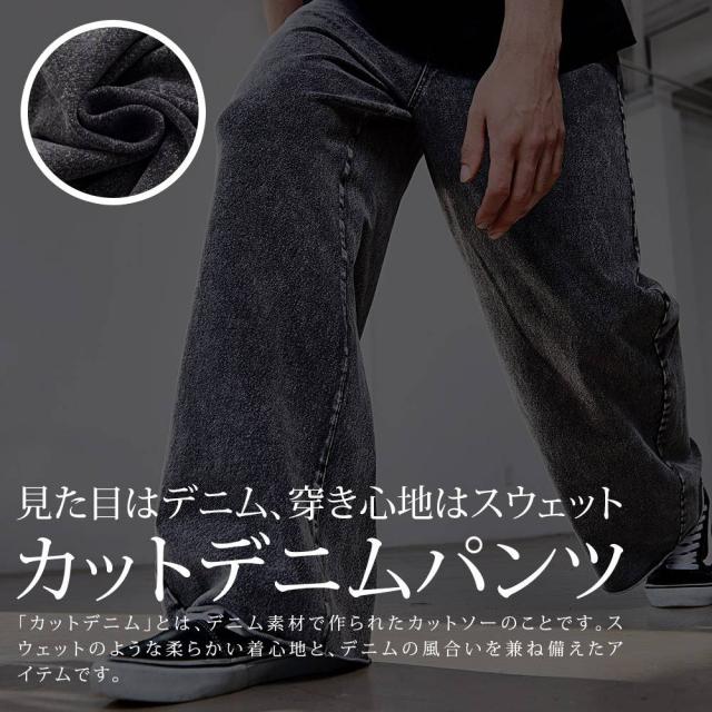ワイドパンツ メンズ おしゃれ スウェットパンツ スエットパンツ カットデニムパンツ ワイドデニムパンツ ジーンズ Gパン ジーパン テーパードパンツ イージーデニムパンツ ヴィンテージ風パンツ ユーズド加工パンツ デニムパンツ ジーンズ Gパン ジーパン [CATN25-03]