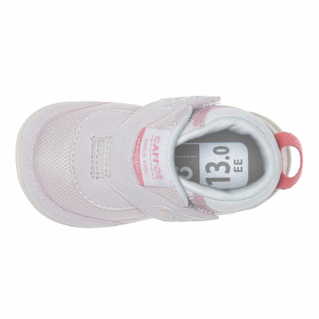 「こどもの足にいいことぜんぶ」の想いから生まれた機能シューズ「ムーンスター キャロット」HI!!シリーズのベビーシューズです。キッズと連動デザインのコンテのファーストシューズです。甲バンドが前面に大きく開くので足入れがしやすく、またメッシュ素材の柔らかなつくりになっています。子どもの足の成長をサポートする「4つの機能(つま先ゆったり/カウンターボックス/フレックスジョイント/洗えるインソール)」により、健やかな成長を促します。重さは13.0cmで片足約100gです。【つま先ゆったり】つま先にゆとりを持たせた形状で、足の指を圧迫せずにのびのび動かせます。【洗えるインソール】足裏になじみ、取り出して洗濯ができるので靴内を清潔に保てる中敷きです。【カウンターボックス】子どもの柔らかくゆがみやすい足を箱型構造でしっかり支えます。【フレックスジョイント】足の曲がりと同じ位置で靴が曲がる設計で、足に余計な負担をかけません。【カテキン】天然緑茶を原料とした自然素材の「カテキン」を使用することで、優れた「抗菌」「防臭」効果を発揮します。