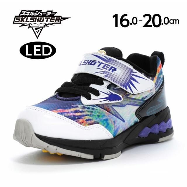 秋冬新作 送料無料 ムーンスター スキルシューター キッズスニーカー 子供靴 SK 0069LE ホワイト スキルを解き放て 抗菌防臭 洗えるインソール 光スキル LED 光る 視認性 夜間安全 夏祭り キャンプ 男の子 通学