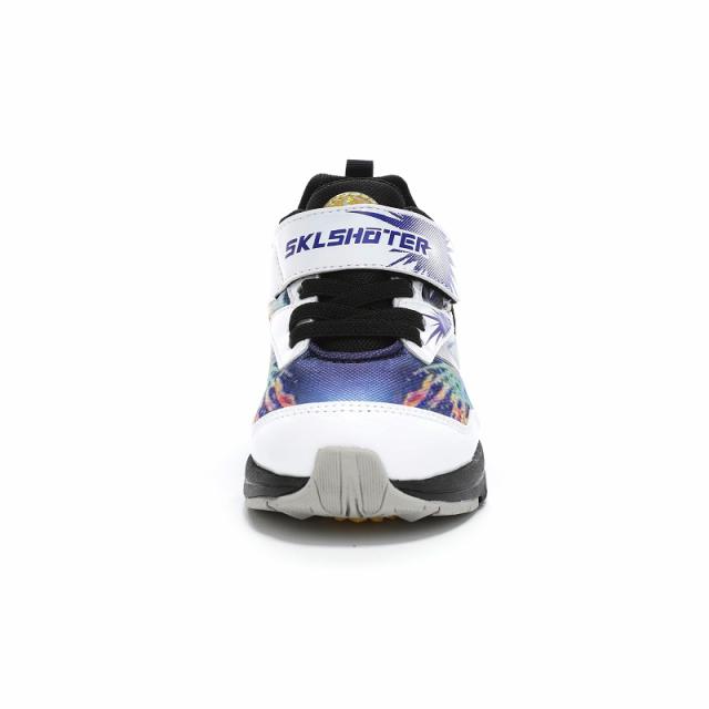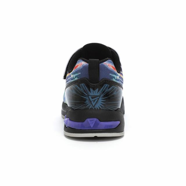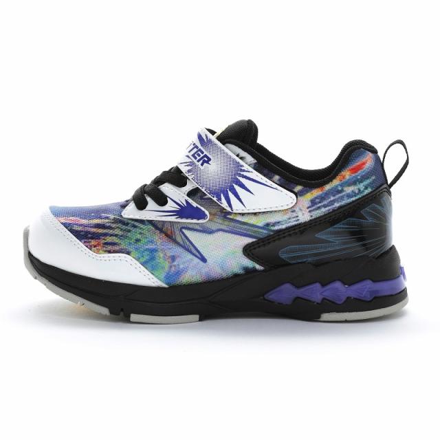 男の子の様々な潜在能力を解き放つシリーズ「スキルシューター」の「光スキル イッセン」です。「スキルを解き放て」をコンセプトに子どもたちの多様化するシーンに合わせた「SKL」をアウトソールに搭載しており、踏み込む際に靴底のSKLが地面を捉え、あらゆる方向への蹴り出しをアシストします。「光スキル」は神々しさを表現したソールにLED部品を搭載。振動によって踵が光り、夜間の安全性を高めます。発光回数の目安は約30万回、およそ2か月光ります。脱ぎ履きしやすいゴム紐×バンドタイプです。外遊びはもちろん、運動会や体育の時間等のスポーツシーンにもおすすめです。アッパーには閃光イメージのグラフィックをプリントし、疾走感を演出。光を連想するカラーリングがポイントです。重さは17.0cmで片足約150gです。【Ag+抗菌防臭】銀イオンの抗菌作用でにおいのもととなる菌の増殖を抑制し、防臭効果を発揮します。【洗えるインソール】インソールは取り出して洗えるのでいつも清潔に保てます。【耐摩耗ラバー】靴底にはすり減りが少なく、高い耐久性を発揮するラバーを採用しています。