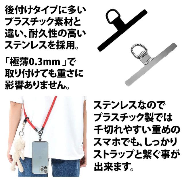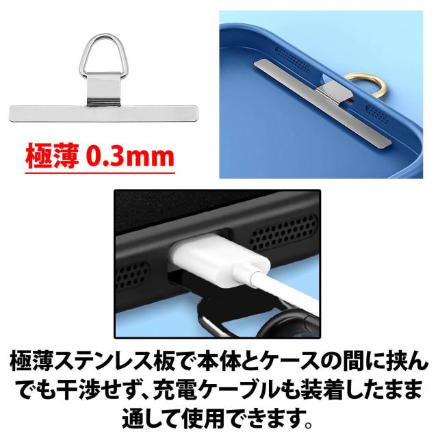 50%offクーポン有 ステンレス スマホ ストラップホルダー T型 2個 セット ちぎれない ストラップホール 全機種対応 携帯 Android アンドロイド iPhone アイフォン スマホ 金具 挟むだけ 耐久 スマホケース ケース カバー ホルダー ネックストラップ ストラップ 落下防止