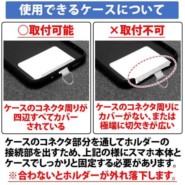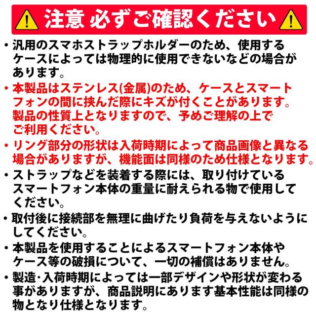 ・汎用のスマホストラップホルダーのため、使用するケースによっては物理的に使用できないなどの場合があります。