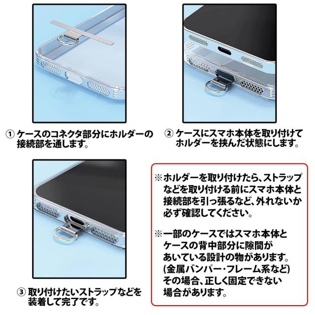 ・ストラップなどを装着する際には、取り付けているスマートフォン本体の重量に耐えられる物で使用してください。