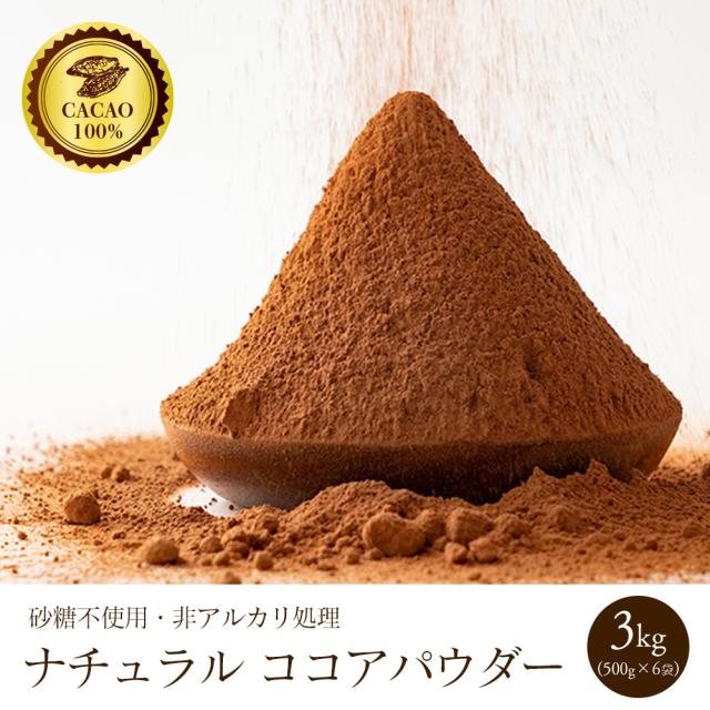 ナチュラルココアパウダー 3kg(500g×6袋) 送料無料 ココア 砂糖不使用 無添加 香料不使用 カカオ お菓子づくり 製菓 製パン