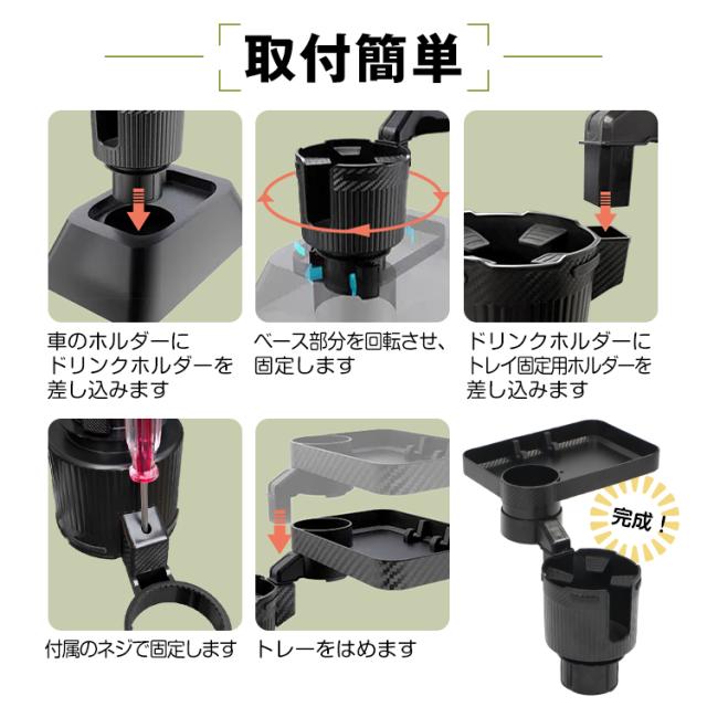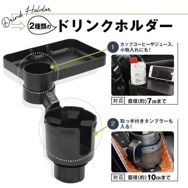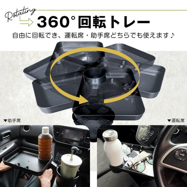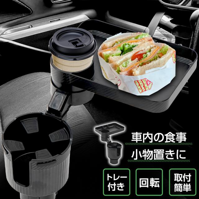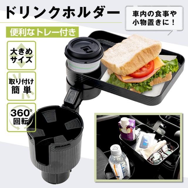 ドリンクホルダー 車載用 トレー付き 2in1 多機能 車載 カップホルダー テーブル テーブルトレー トレイ 大きめ 滑り止め 車内 回転 スマホ 携帯 収納 車載ホルダー 車用品 カー用品 ドリンク カップ 食事 tkee006