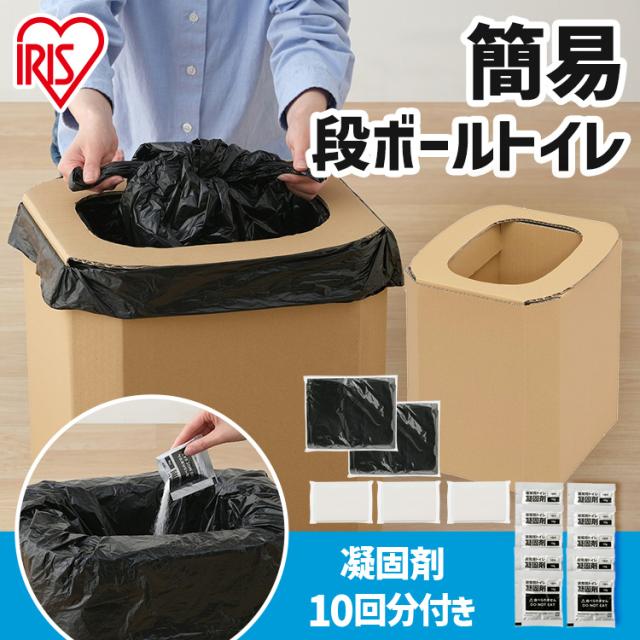 簡易トイレ 防災グッズ 段ボール 10回分 凝固剤 抗菌 防臭 高性能 組み立て式 非常用トイレセット すぐ使える 便座カバー ポケットティッシュ付 衛生的 耐久性 緊急 非常用 トイレ 防災用品 避難用品 防災 災害 断水 DKT-10 アイリスオーヤマ *
