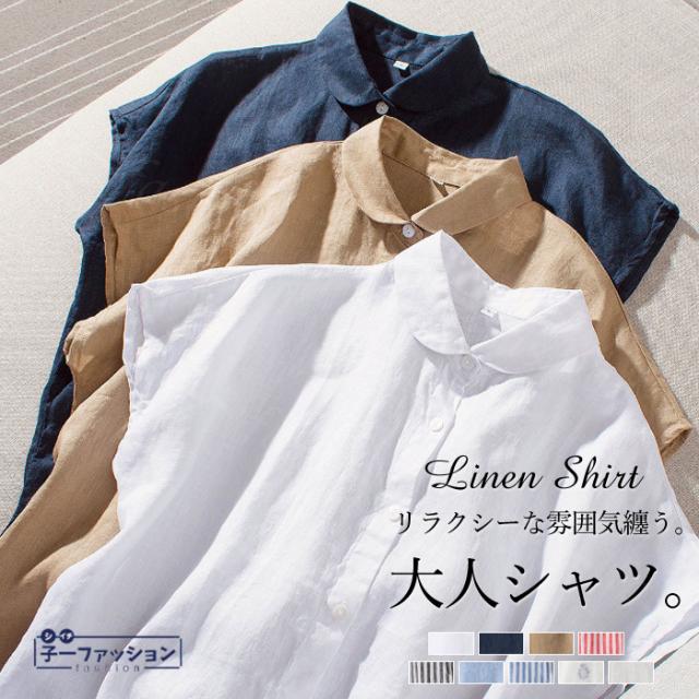 シャツ リネンシャツ リネン混シャツ 薄手 夏新作 新作 レディース トップス 半袖シャツ ゆったり 無地 落ち感 きれいめ カジュアル 春 夏 シンプル ナチュラル ブラウス 前開き 送料無料 シャツブラウス 敬老の日