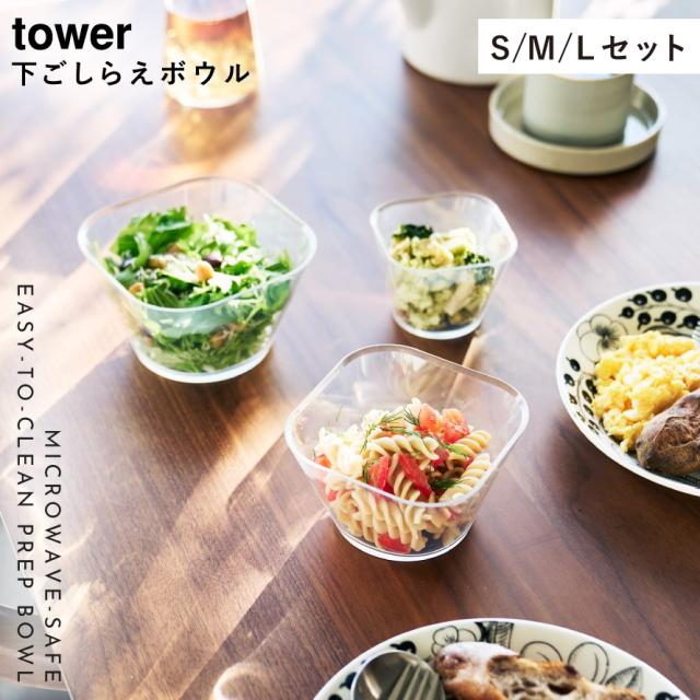 電子レンジ対応洗いやすい下ごしらえボウル タワー SML3点セット クリア 山崎実業 ボウル セット プラスチック 透明 レンジok 食洗機対応 食器 おしゃれ 10128