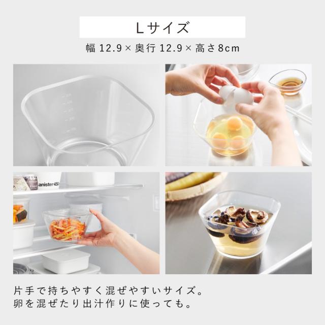 Lは、片手で持ちやすく混ぜやすいサイズ。出汁作りに使っても。